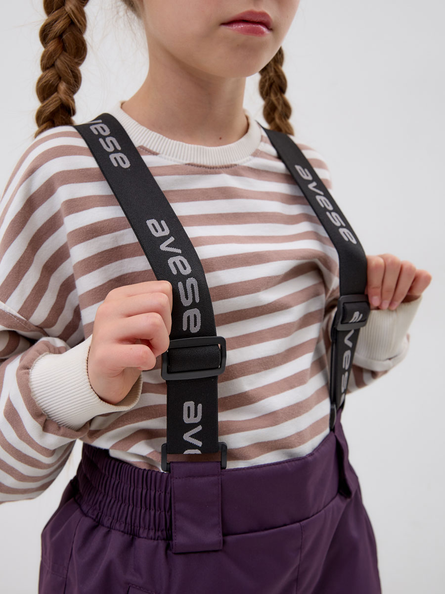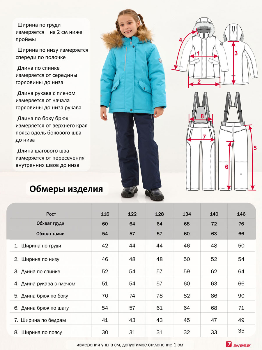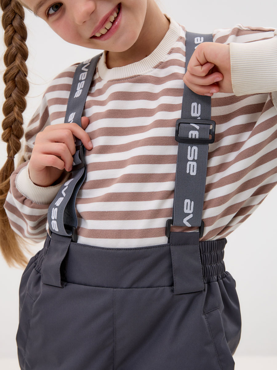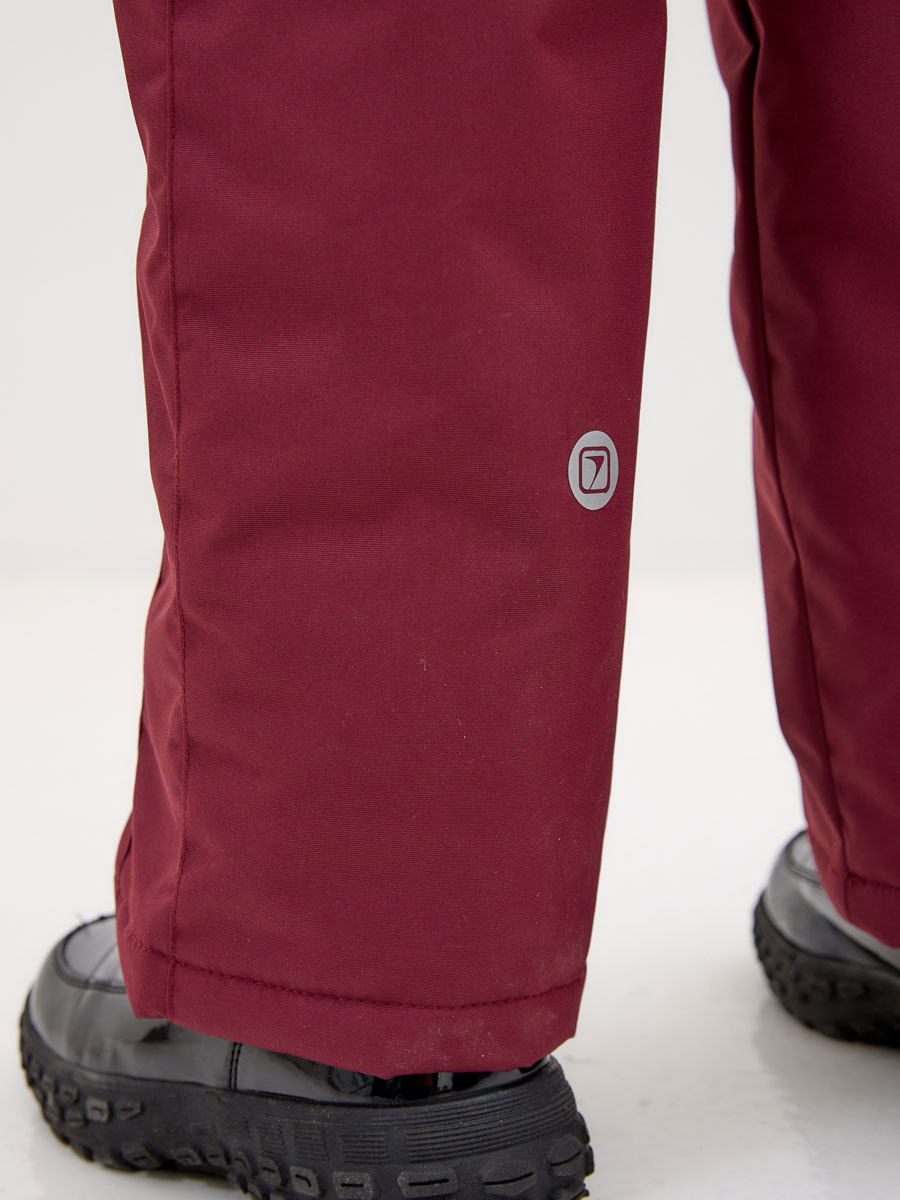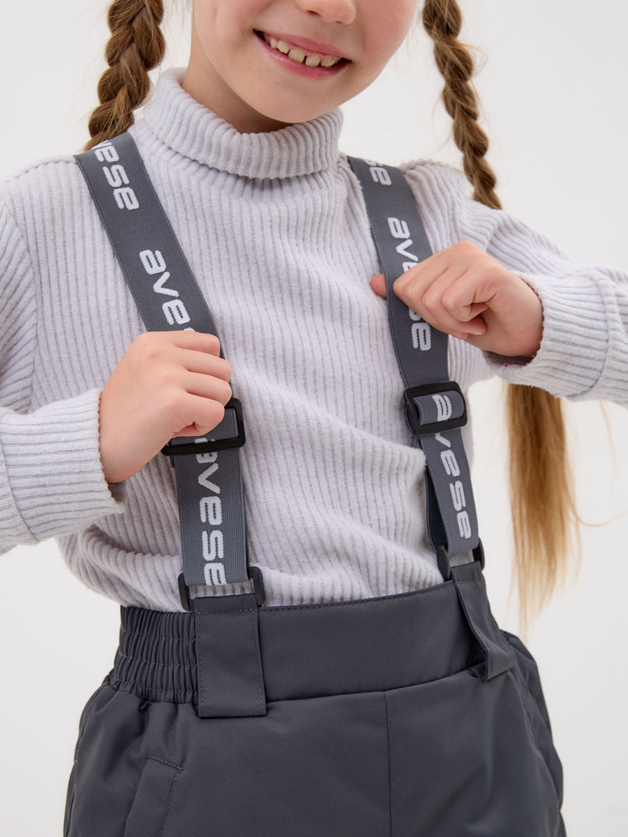 Брюки с отстегивающимися бретелями и спинкой. 2 прорезных кармана с листочками. Подкладка настегана на утеплитель. Пояс отрезной. Низ брюк прямой, с внутренней снегозащитной муфтой на стопорной резине. В костюме использованы светоотражающие элементы.