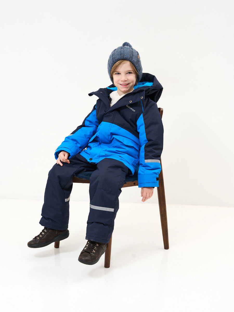 Брюки с отстегивающимися бретелями и спинкой. 2 прорезных кармана с листочками. Подкладка настегана на утеплитель. Пояс отрезной. Низ брюк прямой, с внутренней снегозащитной муфтой на стопорной резине. В костюме использованы светоотражающие элементы.