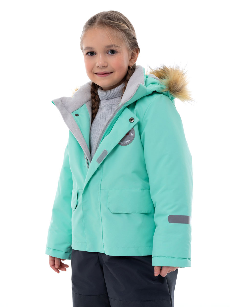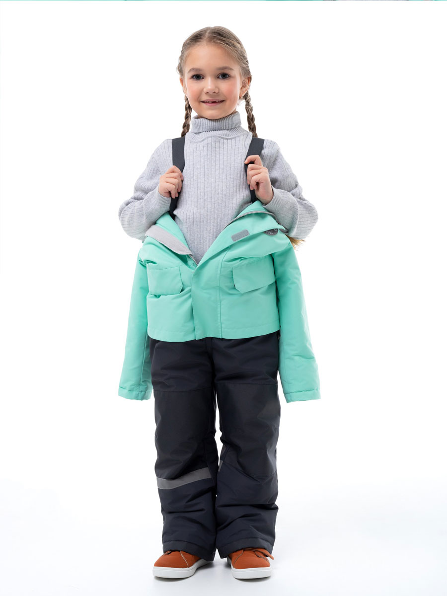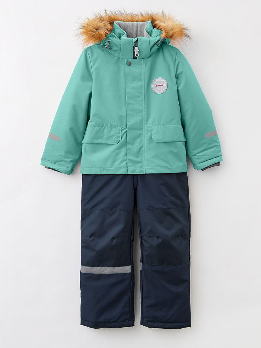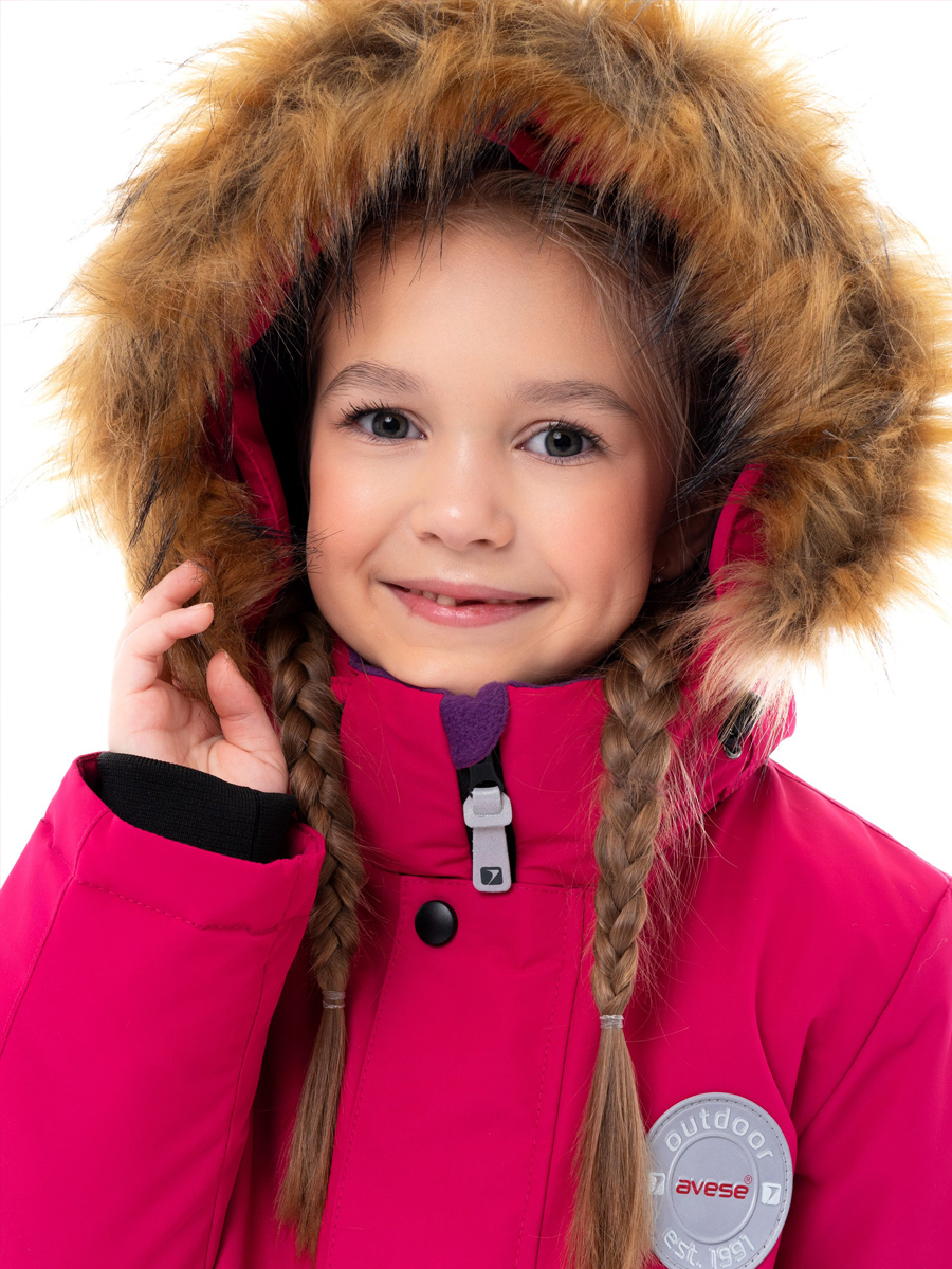 Комбинезон зимний комбинированный для детей из мембранной ткани. Задняя часть брюк и колени из особо прочной ткани, устойчивой к истиранию. Центральная молния закрыта планкой на липучках и кнопках. Комбинированная подкладка из цветного флиса и шелка. Съемный капюшон с отстёгивающейся опушкой из искусственного меха. 2 передних кармана на кнопках. Низ рукава прямой с внутренним манжетом. Низ брюк прямой с внутренней снегозащитной муфтой. На комбинезоне расположены светоотражающие элементы. Рассчитана на температуру от -10 до -25.