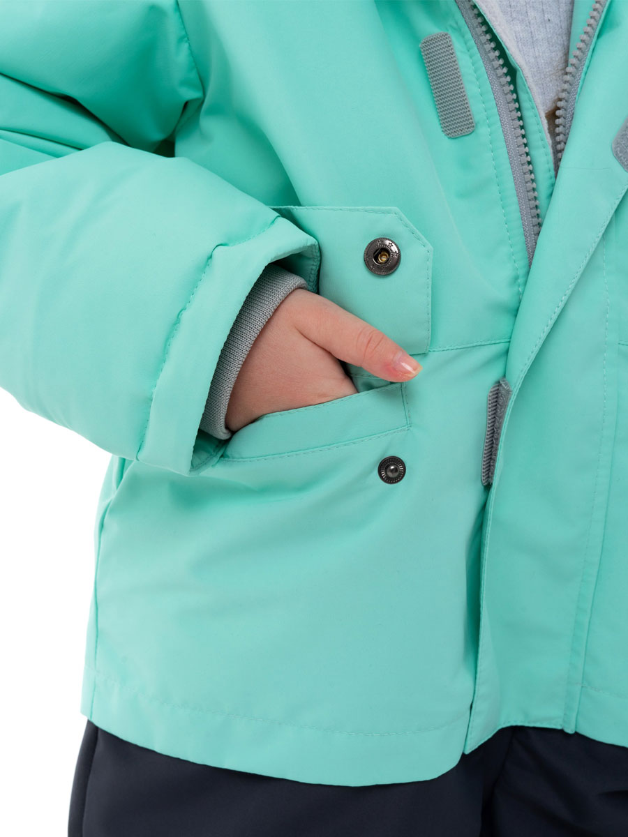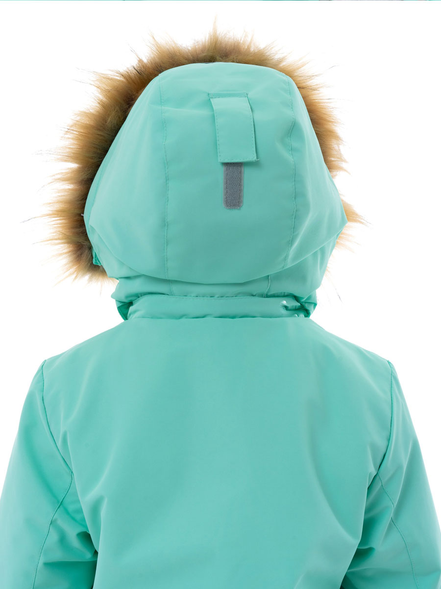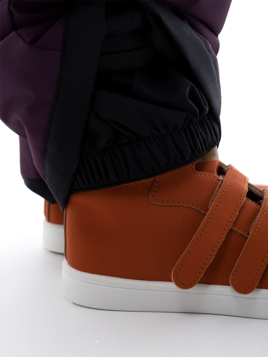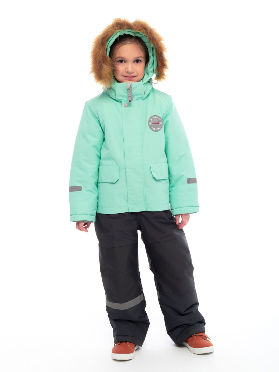 Комбинезон зимний комбинированный для детей из мембранной ткани. Задняя часть брюк и колени из особо прочной ткани, устойчивой к истиранию. Центральная молния закрыта планкой на липучках и кнопках. Комбинированная подкладка из цветного флиса и шелка. Съемный капюшон с отстёгивающейся опушкой из искусственного меха. 2 передних кармана на кнопках. Низ рукава прямой с внутренним манжетом. Низ брюк прямой с внутренней снегозащитной муфтой. На комбинезоне расположены светоотражающие элементы. Рассчитана на температуру от -10 до -25.